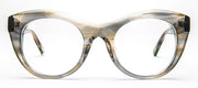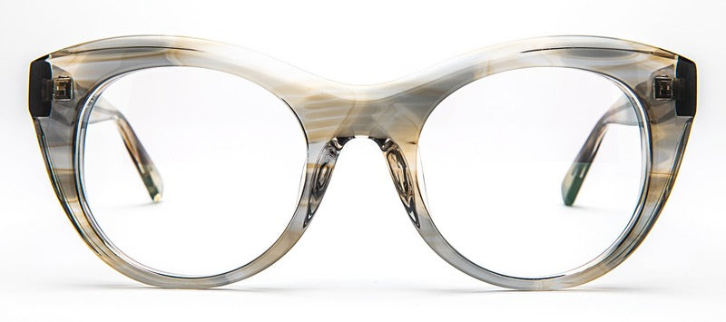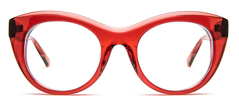 TGG: Cressida brings a bold, sculpted cat-eye aesthetic softened by rounded edges and a slightly upswept brow line. Its deep lens shape offers excellent coverage for progressive or high-index prescriptions, while the thickened endpieces give balance and a confident finish.