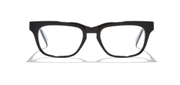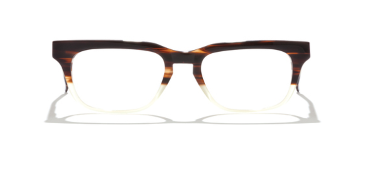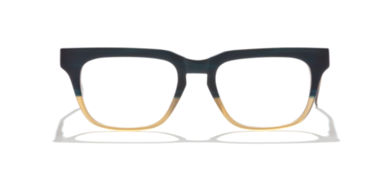 TGG: False 9 is a bold, rectangular frame with vintage undertones and a modern architectural twist. Crafted from richly layered acetate, its prominent brow line and thick rims are balanced by a softened lower edge and a keyhole bridge for enhanced comfort. The contrasting lower section of the frame adds subtle visual intrigue without overwhelming the clean geometry.