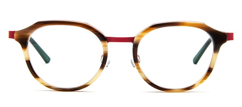 TGG: The Bevel Flin Flon is a standout piece with a rounded lens silhouette that strikes a balance between classic and quirky. The frame’s slight keyhole bridge adds architectural interest while improving comfort and fit for narrower bridges. Made with a combination of metal and acetate, it maintains a lightweight feel with a refined edge. Ideal for those who appreciate timeless shapes with modern twists, this design offers both sophistication and individuality in a uniquely wearable form.