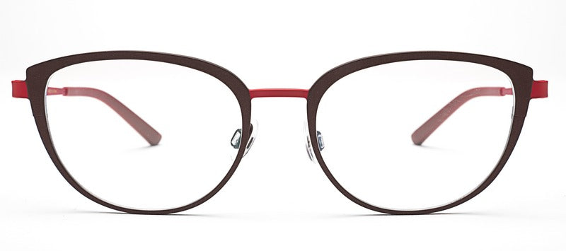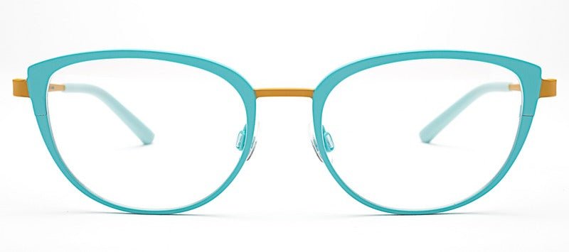 TGG: Cymbeline blends a semi-cat-eye shape with a clean, modern metal construction. Its slightly upswept brow line adds a natural lift to the face, while the thin profile keeps the look refined and unobtrusive. The two-tone finish provides contrast and a subtle pop without being overstated.