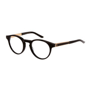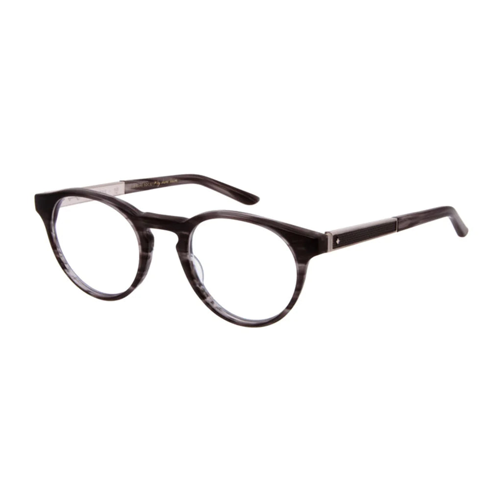 A small round frame with a keyhole bridge, blending a classic scholarly look with contemporary style. 100% pure titanium plated in 12k silver or 18k gold combined with Japanese cotton-based acetate temple tips and a hidden spring hinge. Intricate enamel and laser technologies were used to create state of the art details on a classically inspired shape.