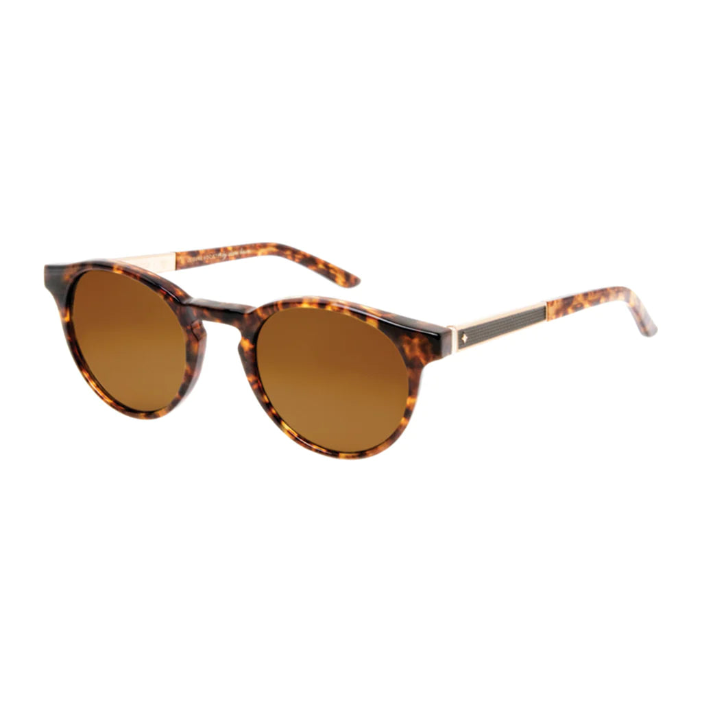 High-density Japanese acetate front in a warm tortoise pattern for a grounded, vintage appeal.