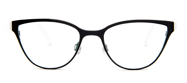 TGG: The Sagrada Familia frame is a sophisticated cat-eye silhouette with a modern edge. Crafted from lightweight metal, it features a striking black front that subtly curves upward for a lifted, elegant effect. The temples are accented with contrasting end tips, adding a contemporary twist. Adjustable nose pads ensure a tailored fit, making this frame both stylish and comfortable—ideal for those who appreciate sleek lines and bold simplicity.