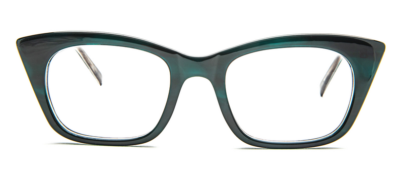 TGG: The Sahara frame is a bold, full-acetate cat-eye design that brings a confident, vintage-inspired flair. It features a deep emerald green marbled finish, adding richness and depth to the classic silhouette. With its pronounced upswept corners and strong browline, this frame is ideal for those who love statement eyewear with a touch of retro glam. Perfect for fashion-forward wearers seeking a sculptural, standout look.